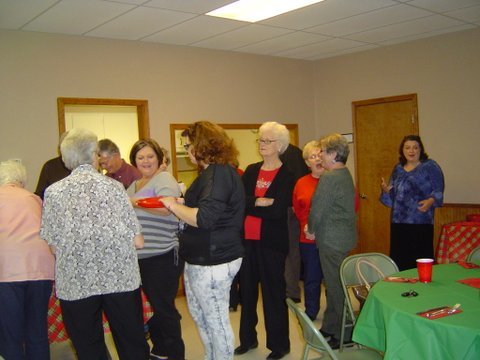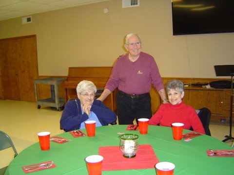 Our own Chris Bailey entertained us with Christmas songs. Thank you so much Chris for a wonderful job. We enjoyed the old and new songs. Door prizes for everyone present were furnished by Pat Lund and Frances Ragsdale. Bonnie Swanson and Janet Foreman furnished us with red cups and plates. Thanks to all of these.
